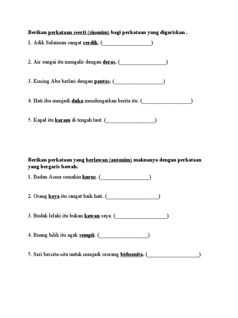 Berikan Perkataan Seerti Sinonim Bagi Perkataan Yang Digariskan Pdf